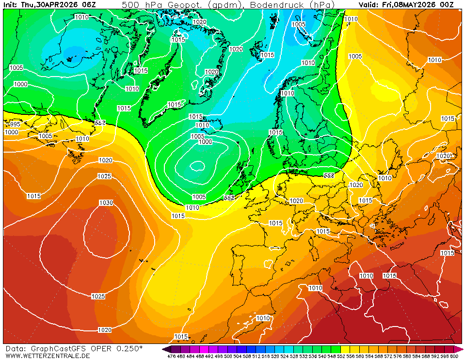 UKMOThe selected variable and region is available, but not for 2026-04-25, 00:00. You will switch back to the first available time step. Model output from the United Kingdom Met Office (UKMO). Maps are updated twice daily around 6:45 und 18:45 UTC. Only basic pressure maps are available and forecast data ranges from day 3 to 6.