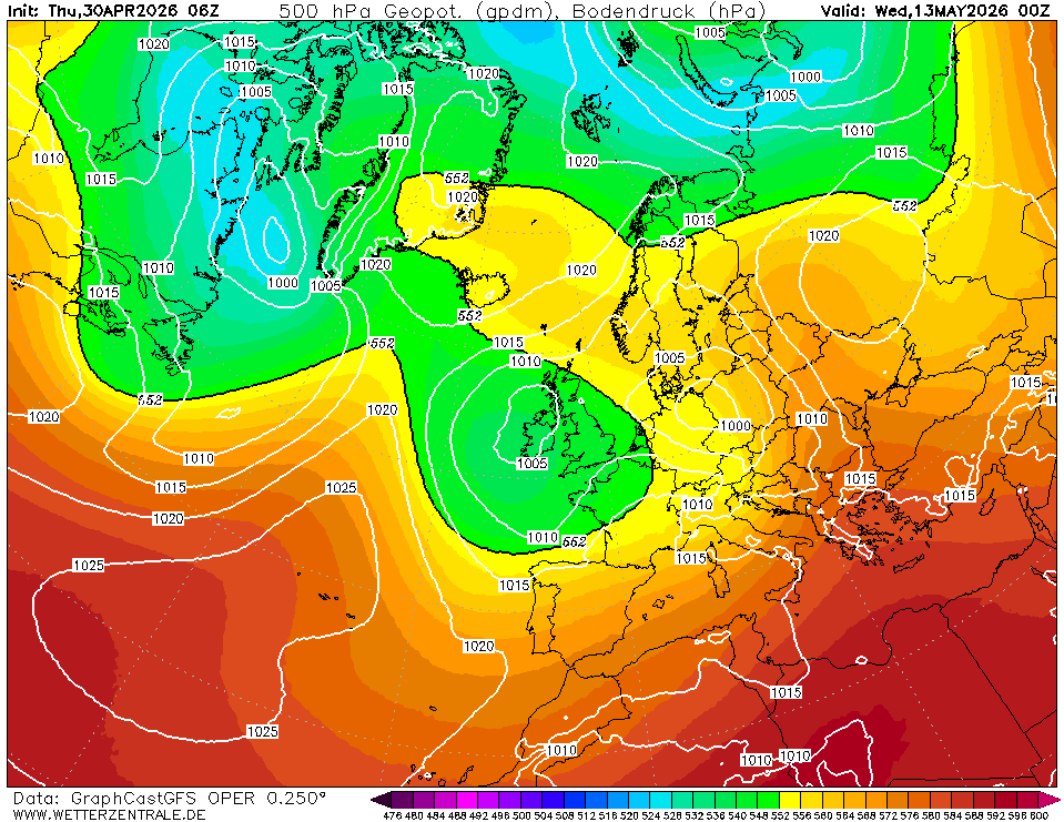 UKMOThe selected variable and region is available, but not for 2026-04-30, 00:00. You will switch back to the first available time step. Model output from the United Kingdom Met Office (UKMO). Maps are updated twice daily around 6:45 und 18:45 UTC. Only basic pressure maps are available and forecast data ranges from day 3 to 6.
