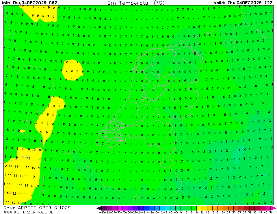 ARPEGECurrently selected. ARPEGE is the global forecast model of the French weather service (Meteo France). It is runs with a maximum resolution of approx. 7 km in Europe and mean global grid spacing of 15 km. WZ offers forecasts up to 102 hours.