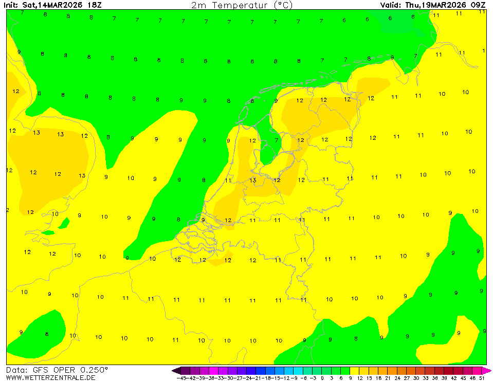 ICONThe selected time, variable and region is available for this model. ICON is the global weather forecast of the German weather service (DWD) with a grid spacing of approx. 13 km globally (Europe nest: 6 km). Model output is available up to 180 hours ahead for the 0Z and 12Z runs, and up to 120 hours for the 6Z and 18Z runs.