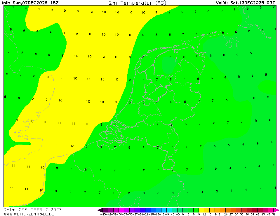 ARPEGEThe selected variable and region is available, but not for 2025-11-22, 03:00. You will switch back to the first available time step. ARPEGE is the global forecast model of the French weather service (Meteo France). It is runs with a maximum resolution of approx. 7 km in Europe and mean global grid spacing of 15 km. WZ offers forecasts up to 102 hours.