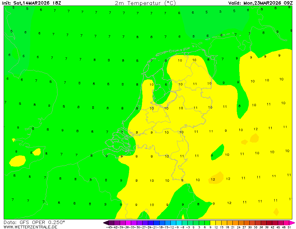 ICONThe selected variable and region is available, but not for 2026-01-29, 09:00. You will switch back to the first available time step. ICON is the global weather forecast of the German weather service (DWD) with a grid spacing of approx. 13 km globally (Europe nest: 6 km). Model output is available up to 180 hours ahead for the 0Z and 12Z runs, and up to 120 hours for the 6Z and 18Z runs.