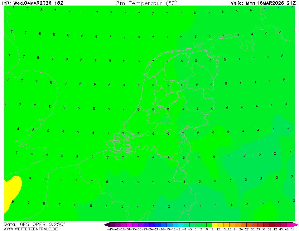 ICONThe selected variable and region is available, but not for 2026-02-27, 21:00. You will switch back to the first available time step. ICON is the global weather forecast of the German weather service (DWD) with a grid spacing of approx. 13 km globally (Europe nest: 6 km). Model output is available up to 180 hours ahead for the 0Z and 12Z runs, and up to 120 hours for the 6Z and 18Z runs.