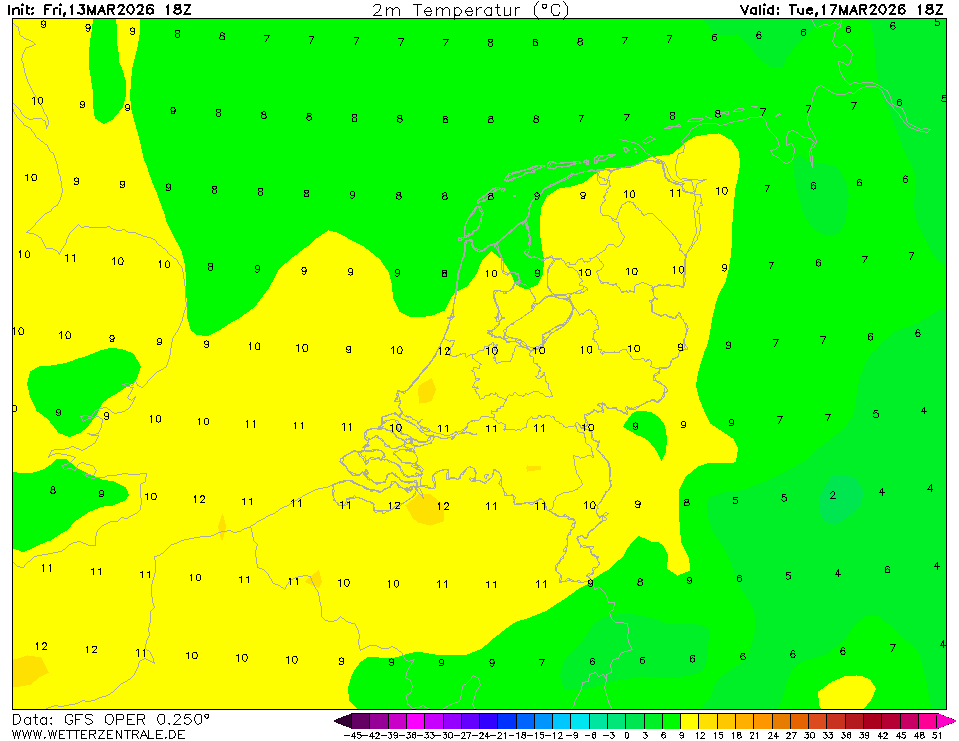 ICONThe selected time, variable and region is available for this model. ICON is the global weather forecast of the German weather service (DWD) with a grid spacing of approx. 13 km globally (Europe nest: 6 km). Model output is available up to 180 hours ahead for the 0Z and 12Z runs, and up to 120 hours for the 6Z and 18Z runs.