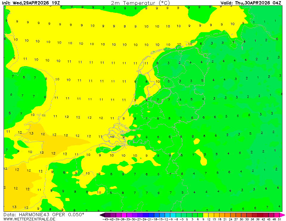 HARMONIE (KNMI-NL)The selected time, variable and region is available for this model. HARMONIE is developed in a european consortium and this is the output provided by the KNMI at the supercomputing facilities in Iceland. The output from Cy43 is available at a grid spacing of 0.029 degree. These data are the raw data provided by the KNMI. The model is reinitialized every hour and run up to 60 hrs ahead.