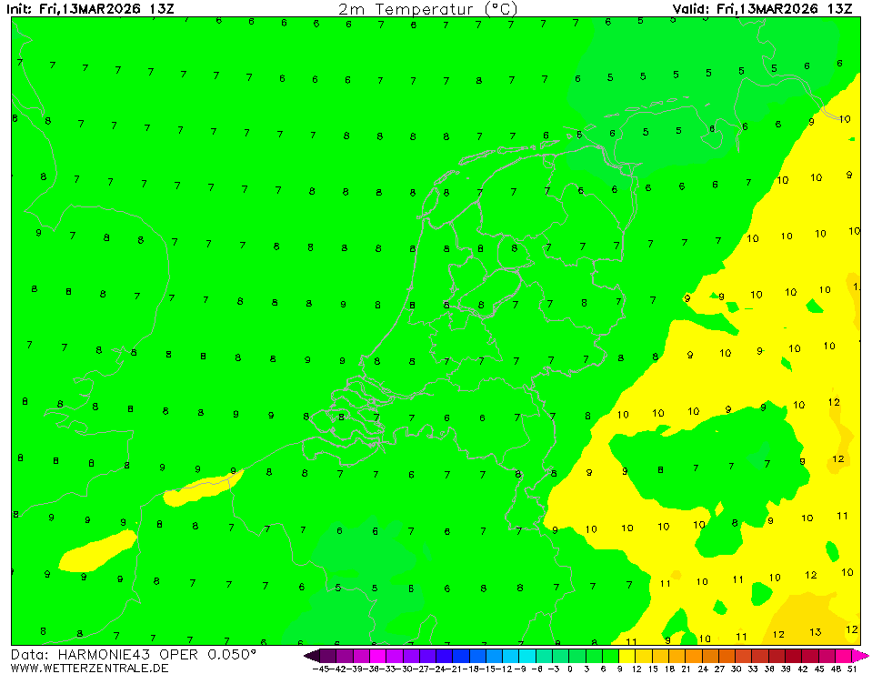 HARMONIE (KNMI-NL)The selected time, variable and region is available for this model. HARMONIE is developed in a european consortium and this is the output provided by the KNMI at the supercomputing facilities in Iceland. The output from Cy43 is available at a grid spacing of 0.029 degree. These data are the raw data provided by the KNMI. The model is reinitialized every hour and run up to 60 hrs ahead.