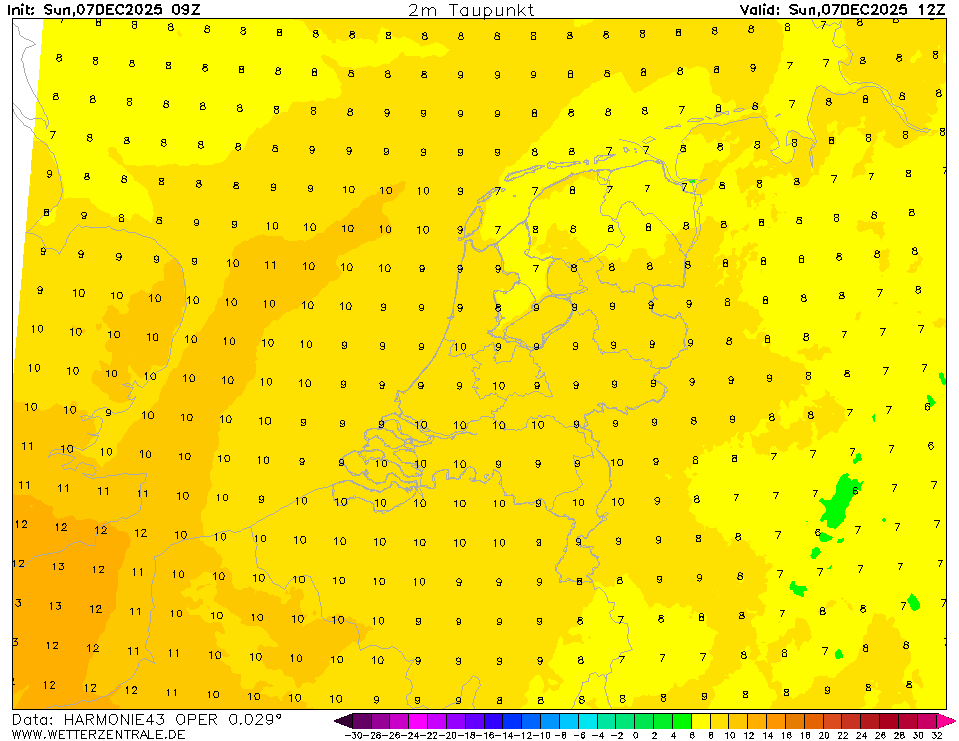 HARMONIE (KNMI-EU)The selected variable and region is available, but not for 2025-11-08, 12:00. You will switch back to the first available time step. HARMONIE is developed in a european consortium and this is the output provided by the KNMI at the supercomputing facilities in Iceland. The output from Cy43 is available at a rotated lat-lon grid and regridded at our server to a grid spacing of 0.05 degree. These data are the raw data provided by the KNMI. The model is reinitialized every hour and run up to 60 hrs ahead.