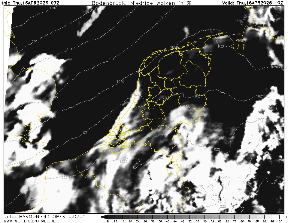 HARMONIE (KNMI-NL)Currently selected. HARMONIE is developed in a european consortium and this is the output provided by the KNMI at the supercomputing facilities in Iceland. The output from Cy43 is available at a grid spacing of 0.029 degree. These data are the raw data provided by the KNMI. The model is reinitialized every hour and run up to 60 hrs ahead.