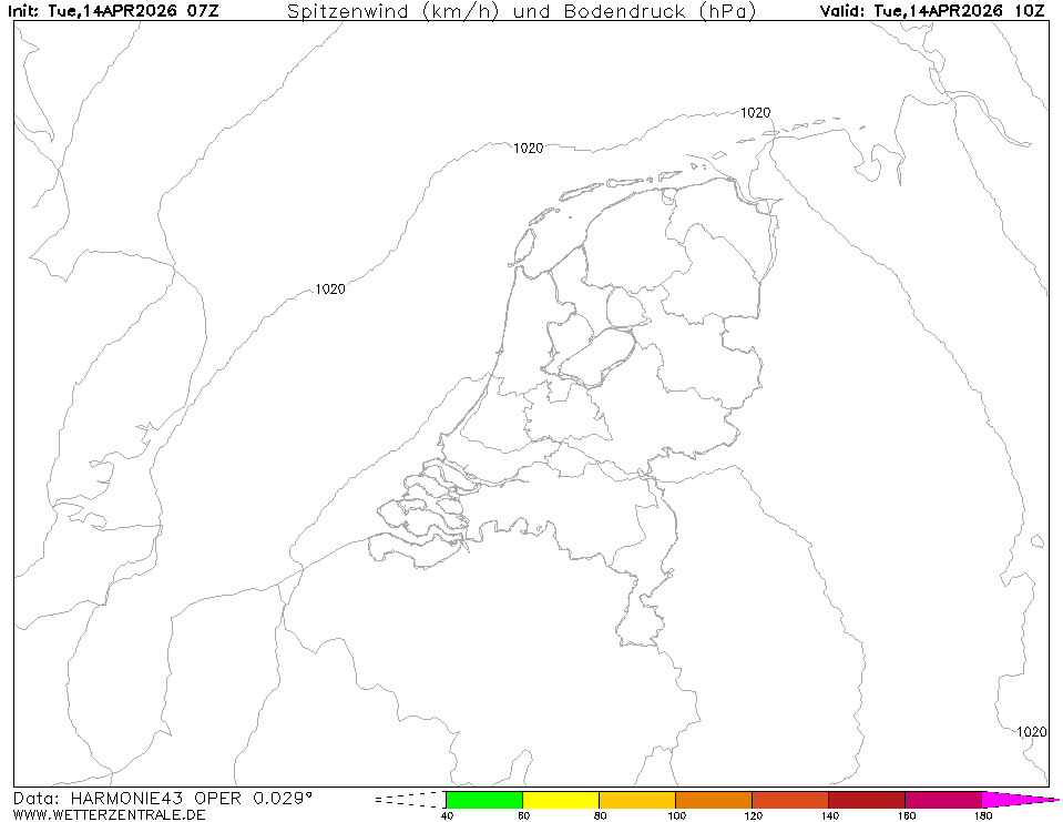 HARMONIE (KNMI-EU)The selected time, variable and region is available for this model. HARMONIE is developed in a european consortium and this is the output provided by the KNMI at the supercomputing facilities in Iceland. The output from Cy43 is available at a rotated lat-lon grid and regridded at our server to a grid spacing of 0.05 degree. These data are the raw data provided by the KNMI. The model is reinitialized every hour and run up to 60 hrs ahead.