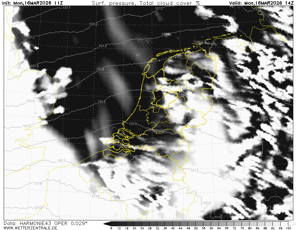 HARMONIE (KNMI-NL)Currently selected. HARMONIE is developed in a european consortium and this is the output provided by the KNMI at the supercomputing facilities in Iceland. The output from Cy43 is available at a grid spacing of 0.029 degree. These data are the raw data provided by the KNMI. The model is reinitialized every hour and run up to 60 hrs ahead.