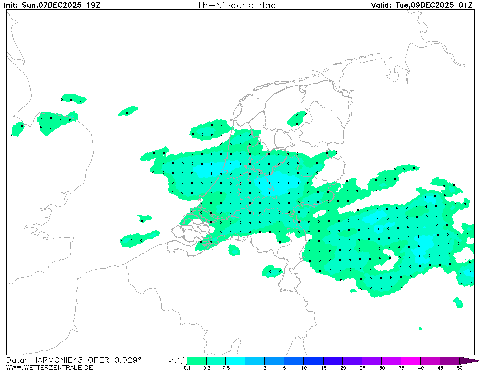 HARMONIE (KNMI-EU)The selected time, variable and region is available for this model. HARMONIE is developed in a european consortium and this is the output provided by the KNMI at the supercomputing facilities in Iceland. The output from Cy43 is available at a rotated lat-lon grid and regridded at our server to a grid spacing of 0.05 degree. These data are the raw data provided by the KNMI. The model is reinitialized every hour and run up to 60 hrs ahead.