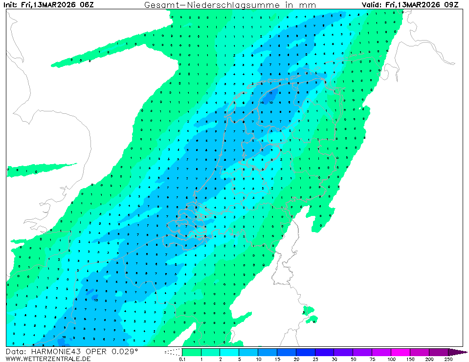 HARMONIE (KNMI-NL)Currently selected. HARMONIE is developed in a european consortium and this is the output provided by the KNMI at the supercomputing facilities in Iceland. The output from Cy43 is available at a grid spacing of 0.029 degree. These data are the raw data provided by the KNMI. The model is reinitialized every hour and run up to 60 hrs ahead.