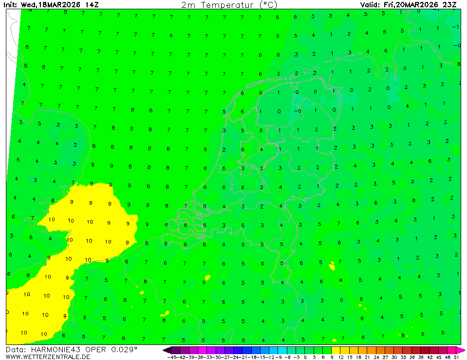 HARMONIE (KNMI-EU)The selected variable and region is available, but not for 2026-02-09, 23:00. You will switch back to the first available time step. HARMONIE is developed in a european consortium and this is the output provided by the KNMI at the supercomputing facilities in Iceland. The output from Cy43 is available at a rotated lat-lon grid and regridded at our server to a grid spacing of 0.05 degree. These data are the raw data provided by the KNMI. The model is reinitialized every hour and run up to 60 hrs ahead.