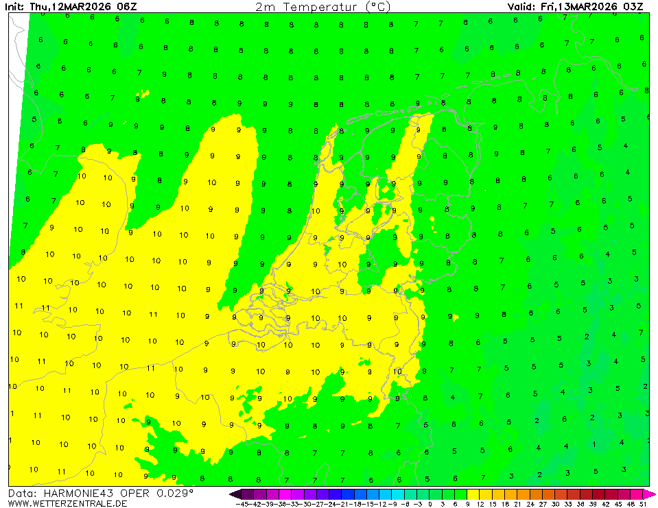 HARMONIE (KNMI-EU)The selected time, variable and region is available for this model. HARMONIE is developed in a european consortium and this is the output provided by the KNMI at the supercomputing facilities in Iceland. The output from Cy43 is available at a rotated lat-lon grid and regridded at our server to a grid spacing of 0.05 degree. These data are the raw data provided by the KNMI. The model is reinitialized every hour and run up to 60 hrs ahead.