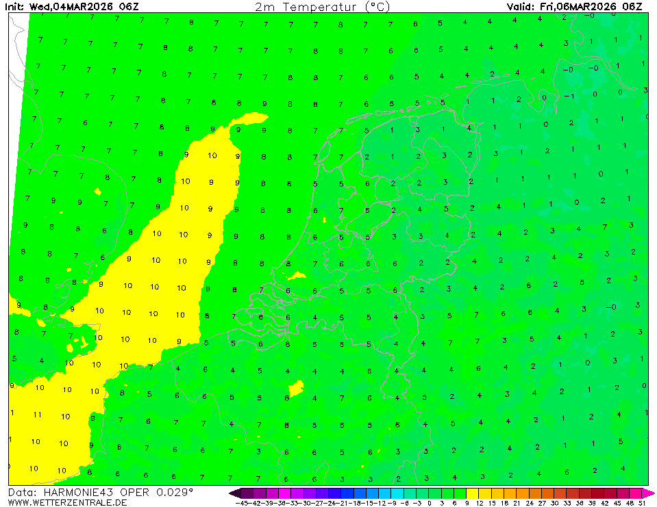 AROMEThe selected variable and region is available, but not for 2026-02-09, 06:00. You will switch back to the first available time step. AROME is a high resolution (2.5 km) weather forecast model which is used by various weather services in Europe. On the WZ, forecasts from Meteo France and the Norwegian Weather Service are shown for western Europe and northern Europe, respectively.