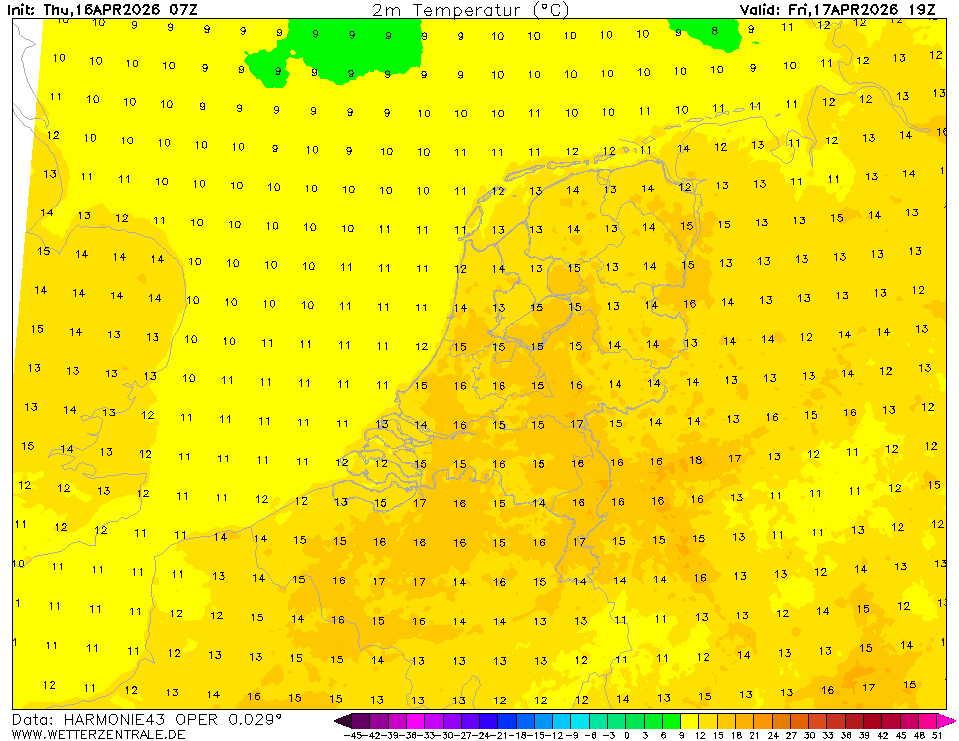 HARMONIE (KNMI-EU)The selected time, variable and region is available for this model. HARMONIE is developed in a european consortium and this is the output provided by the KNMI at the supercomputing facilities in Iceland. The output from Cy43 is available at a rotated lat-lon grid and regridded at our server to a grid spacing of 0.05 degree. These data are the raw data provided by the KNMI. The model is reinitialized every hour and run up to 60 hrs ahead.