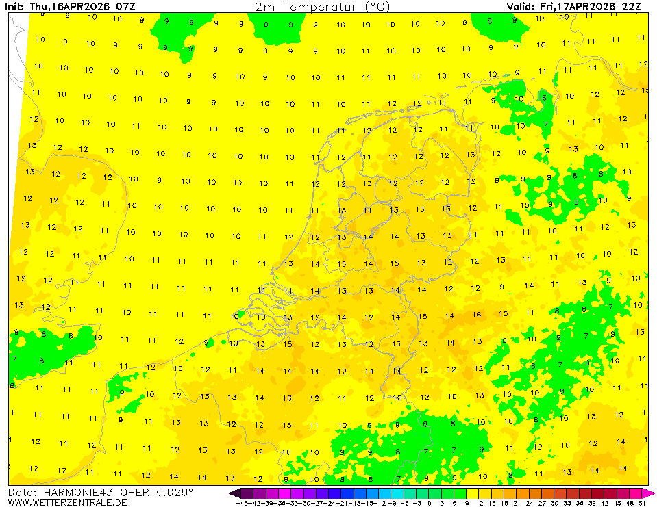 HARMONIE (KNMI-EU)The selected time, variable and region is available for this model. HARMONIE is developed in a european consortium and this is the output provided by the KNMI at the supercomputing facilities in Iceland. The output from Cy43 is available at a rotated lat-lon grid and regridded at our server to a grid spacing of 0.05 degree. These data are the raw data provided by the KNMI. The model is reinitialized every hour and run up to 60 hrs ahead.