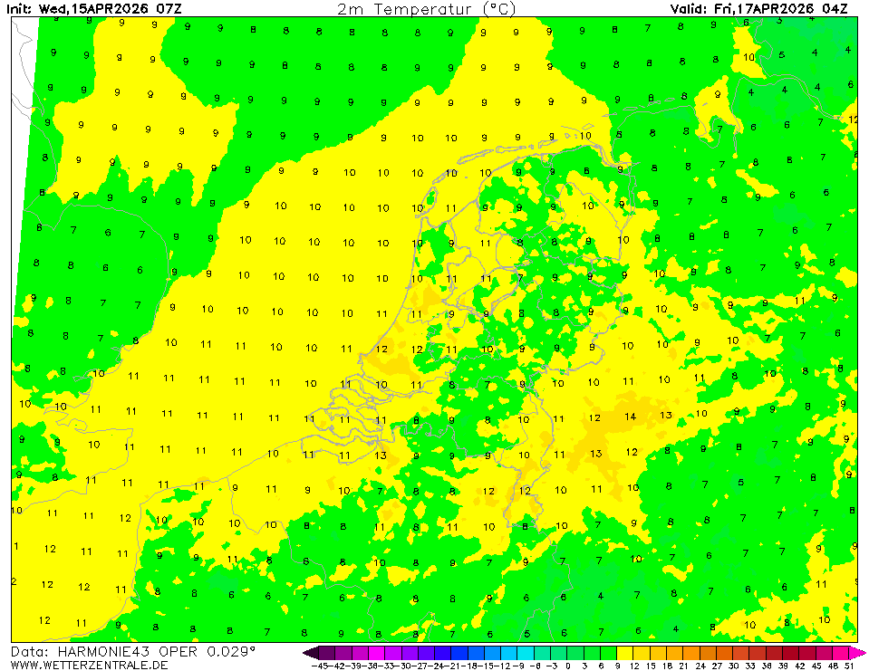 HARMONIE (KNMI-EU)The selected variable and region is available, but not for 2026-03-12, 04:00. You will switch back to the first available time step. HARMONIE is developed in a european consortium and this is the output provided by the KNMI at the supercomputing facilities in Iceland. The output from Cy43 is available at a rotated lat-lon grid and regridded at our server to a grid spacing of 0.05 degree. These data are the raw data provided by the KNMI. The model is reinitialized every hour and run up to 60 hrs ahead.