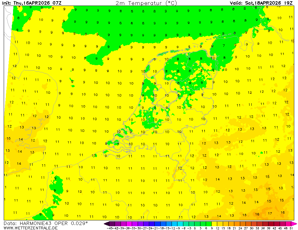 HARMONIE (KNMI-EU)The selected time, variable and region is available for this model. HARMONIE is developed in a european consortium and this is the output provided by the KNMI at the supercomputing facilities in Iceland. The output from Cy43 is available at a rotated lat-lon grid and regridded at our server to a grid spacing of 0.05 degree. These data are the raw data provided by the KNMI. The model is reinitialized every hour and run up to 60 hrs ahead.