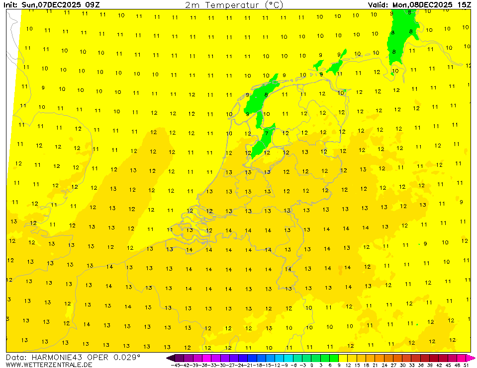 HARMONIE (KNMI-EU)The selected time, variable and region is available for this model. HARMONIE is developed in a european consortium and this is the output provided by the KNMI at the supercomputing facilities in Iceland. The output from Cy43 is available at a rotated lat-lon grid and regridded at our server to a grid spacing of 0.05 degree. These data are the raw data provided by the KNMI. The model is reinitialized every hour and run up to 60 hrs ahead.