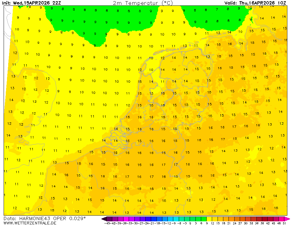 HARMONIE (KNMI-EU)The selected time, variable and region is available for this model. HARMONIE is developed in a european consortium and this is the output provided by the KNMI at the supercomputing facilities in Iceland. The output from Cy43 is available at a rotated lat-lon grid and regridded at our server to a grid spacing of 0.05 degree. These data are the raw data provided by the KNMI. The model is reinitialized every hour and run up to 60 hrs ahead.