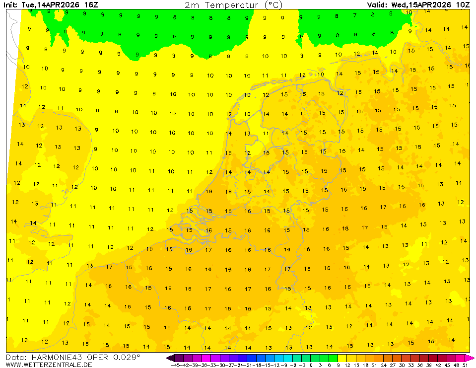 HARMONIE (KNMI-EU)The selected time, variable and region is available for this model. HARMONIE is developed in a european consortium and this is the output provided by the KNMI at the supercomputing facilities in Iceland. The output from Cy43 is available at a rotated lat-lon grid and regridded at our server to a grid spacing of 0.05 degree. These data are the raw data provided by the KNMI. The model is reinitialized every hour and run up to 60 hrs ahead.