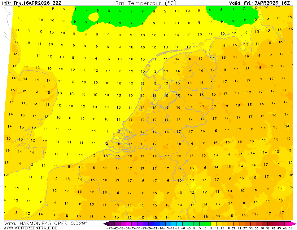 AROMEThe selected variable and region is available, but not for 2026-03-17, 16:00. You will switch back to the first available time step. AROME is a high resolution (2.5 km) weather forecast model which is used by various weather services in Europe. On the WZ, forecasts from Meteo France and the Norwegian Weather Service are shown for western Europe and northern Europe, respectively.