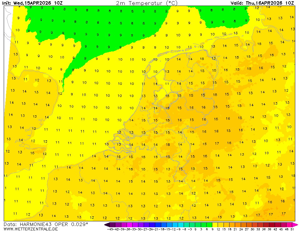 HARMONIE (KNMI-EU)The selected time, variable and region is available for this model. HARMONIE is developed in a european consortium and this is the output provided by the KNMI at the supercomputing facilities in Iceland. The output from Cy43 is available at a rotated lat-lon grid and regridded at our server to a grid spacing of 0.05 degree. These data are the raw data provided by the KNMI. The model is reinitialized every hour and run up to 60 hrs ahead.