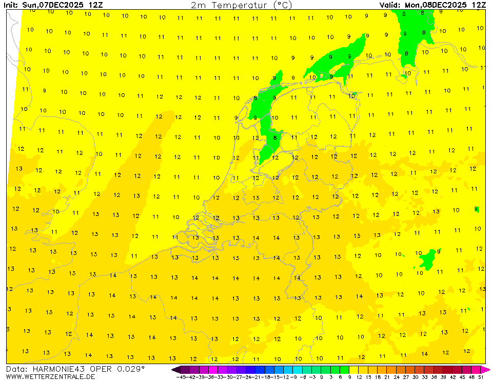 HARMONIE (KNMI-EU)The selected time, variable and region is available for this model. HARMONIE is developed in a european consortium and this is the output provided by the KNMI at the supercomputing facilities in Iceland. The output from Cy43 is available at a rotated lat-lon grid and regridded at our server to a grid spacing of 0.05 degree. These data are the raw data provided by the KNMI. The model is reinitialized every hour and run up to 60 hrs ahead.