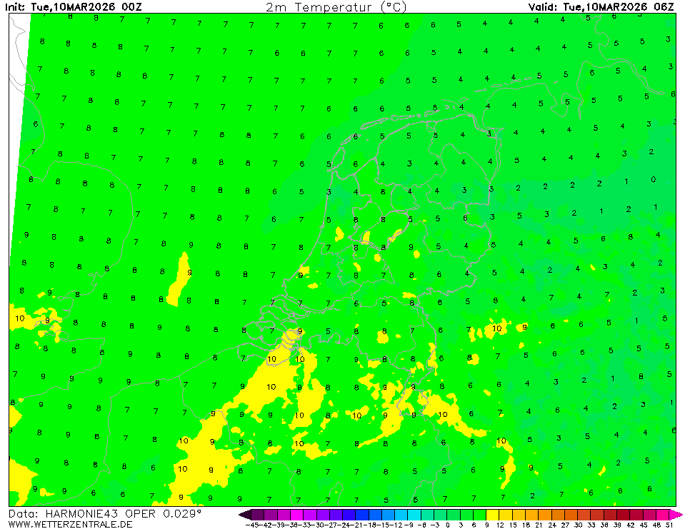 HARMONIE (KNMI-EU)The selected variable and region is available, but not for 2025-12-05, 06:00. You will switch back to the first available time step. HARMONIE is developed in a european consortium and this is the output provided by the KNMI at the supercomputing facilities in Iceland. The output from Cy43 is available at a rotated lat-lon grid and regridded at our server to a grid spacing of 0.05 degree. These data are the raw data provided by the KNMI. The model is reinitialized every hour and run up to 60 hrs ahead.