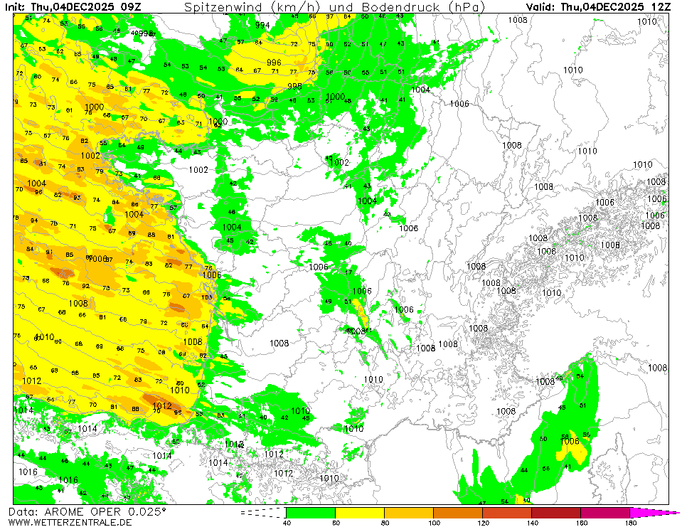 AROMECurrently selected. AROME is a high resolution (2.5 km) weather forecast model which is used by various weather services in Europe. On the WZ, forecasts from Meteo France and the Norwegian Weather Service are shown for western Europe and northern Europe, respectively.
