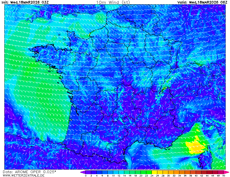 ARPEGEThe selected variable and region is available, but not for 2026-02-18, 06:00. You will switch back to the first available time step. ARPEGE is the global forecast model of the French weather service (Meteo France). It is runs with a maximum resolution of approx. 7 km in Europe and mean global grid spacing of 15 km. WZ offers forecasts up to 102 hours.