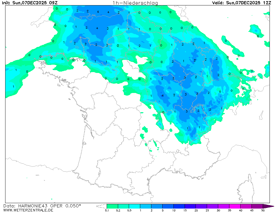 AROMEThe selected variable and region is available, but not for 2025-11-08, 12:00. You will switch back to the first available time step. AROME is a high resolution (2.5 km) weather forecast model which is used by various weather services in Europe. On the WZ, forecasts from Meteo France and the Norwegian Weather Service are shown for western Europe and northern Europe, respectively.