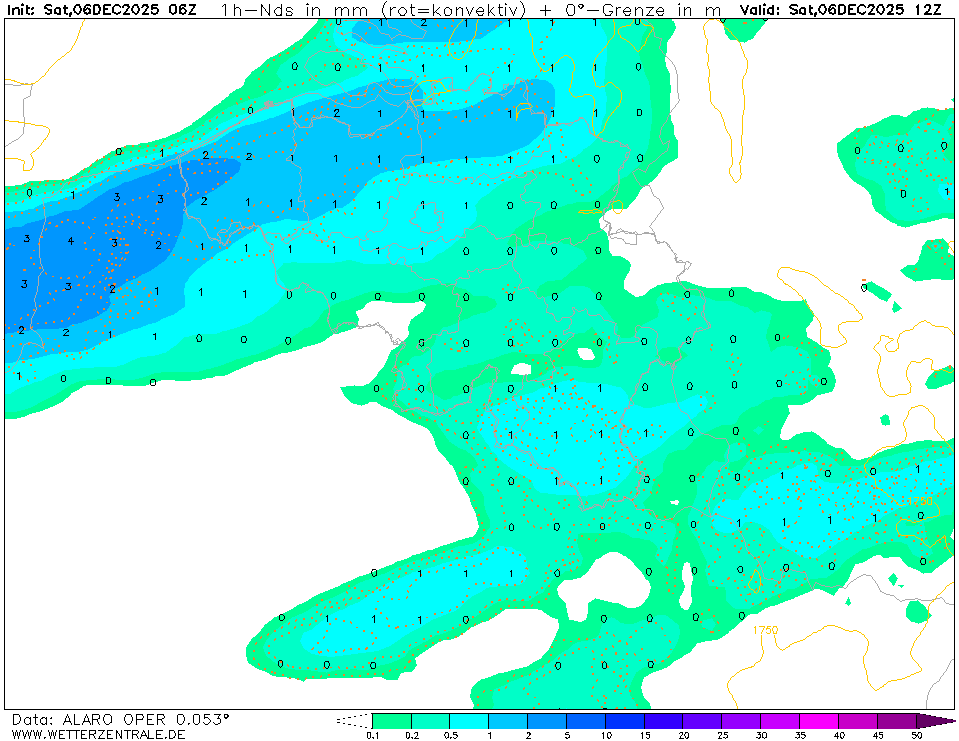 WRFThe selected variable and region is available, but not for 2025-11-07, 09:00. You will switch back to the first available time step. WRF (Weather Research and Forecasting model) is a freely available weather forecast model. WRF version 3.9 is run on the WZ servers and offers 4 forecasts per day up to 72 hours. It is currently run with a horizontal grid spacing of 5 km and uses the WRF single-moment 3 class microphysics scheme, the YSU PBL scheme and the Dudhia radiation scheme.