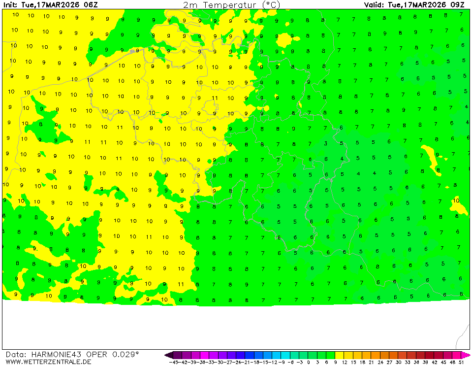 HARMONIE (KNMI-EU)The selected variable and region is available, but not for 2026-01-12, 09:00. You will switch back to the first available time step. HARMONIE is developed in a european consortium and this is the output provided by the KNMI at the supercomputing facilities in Iceland. The output from Cy43 is available at a rotated lat-lon grid and regridded at our server to a grid spacing of 0.05 degree. These data are the raw data provided by the KNMI. The model is reinitialized every hour and run up to 60 hrs ahead.