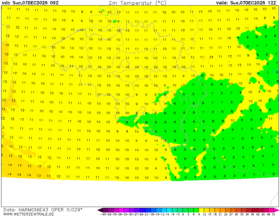 HARMONIE (KNMI-EU)The selected variable and region is available, but not for 2025-11-08, 12:00. You will switch back to the first available time step. HARMONIE is developed in a european consortium and this is the output provided by the KNMI at the supercomputing facilities in Iceland. The output from Cy43 is available at a rotated lat-lon grid and regridded at our server to a grid spacing of 0.05 degree. These data are the raw data provided by the KNMI. The model is reinitialized every hour and run up to 60 hrs ahead.