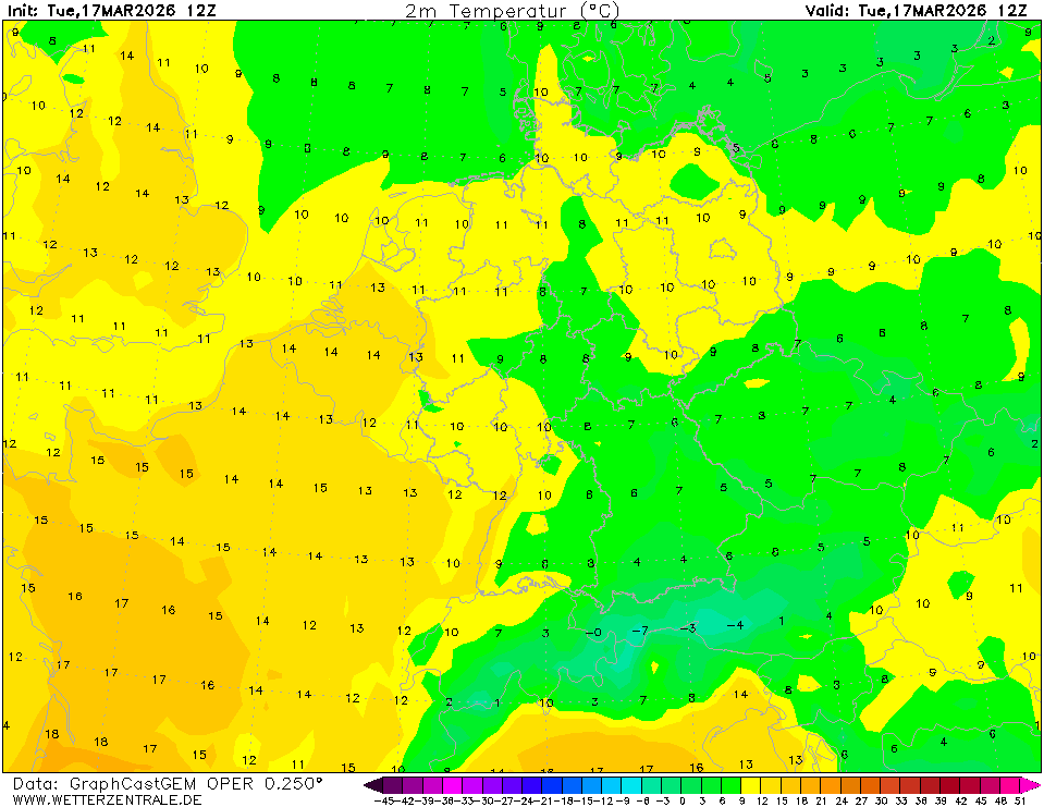 GEMThe selected variable and region is available, but not for 2026-02-15, 12:00. You will switch back to the first available time step. GEM is the global forecast model of the Canadian weather service and computes 10 day forecasts.