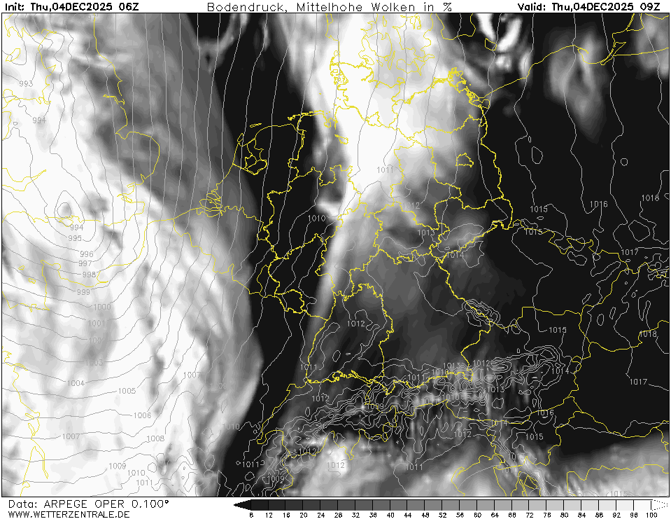 ARPEGECurrently selected. ARPEGE is the global forecast model of the French weather service (Meteo France). It is runs with a maximum resolution of approx. 7 km in Europe and mean global grid spacing of 15 km. WZ offers forecasts up to 102 hours.
