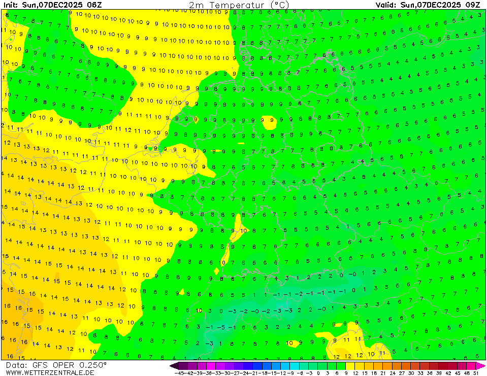 GEMThe selected variable and region is available, but not for 2025-11-15, 09:00. You will switch back to the first available time step. GEM is the global forecast model of the Canadian weather service and computes 10 day forecasts.