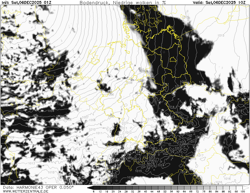 HARMONIE (KNMI-EU)Currently selected. HARMONIE is developed in a european consortium and this is the output provided by the KNMI at the supercomputing facilities in Iceland. The output from Cy43 is available at a rotated lat-lon grid and regridded at our server to a grid spacing of 0.05 degree. These data are the raw data provided by the KNMI. The model is reinitialized every hour and run up to 60 hrs ahead.