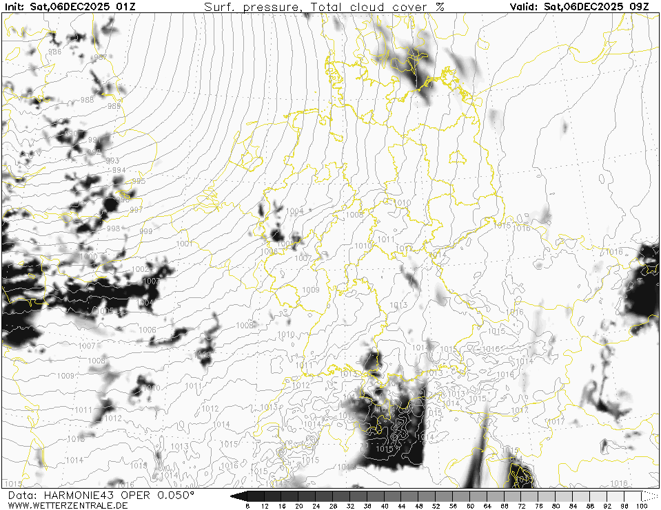HARMONIE (KNMI-EU)Currently selected. HARMONIE is developed in a european consortium and this is the output provided by the KNMI at the supercomputing facilities in Iceland. The output from Cy43 is available at a rotated lat-lon grid and regridded at our server to a grid spacing of 0.05 degree. These data are the raw data provided by the KNMI. The model is reinitialized every hour and run up to 60 hrs ahead.