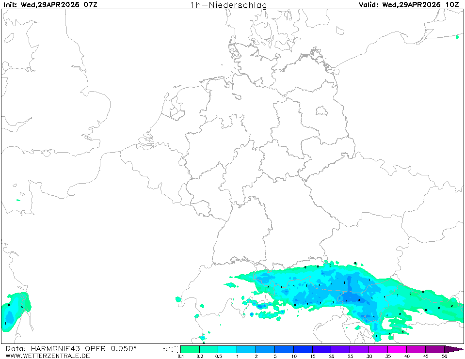 HARMONIE (KNMI-EU)Currently selected. HARMONIE is developed in a european consortium and this is the output provided by the KNMI at the supercomputing facilities in Iceland. The output from Cy43 is available at a rotated lat-lon grid and regridded at our server to a grid spacing of 0.05 degree. These data are the raw data provided by the KNMI. The model is reinitialized every hour and run up to 60 hrs ahead.