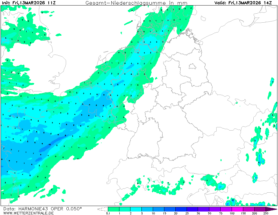 HARMONIE (KNMI-EU)Currently selected. HARMONIE is developed in a european consortium and this is the output provided by the KNMI at the supercomputing facilities in Iceland. The output from Cy43 is available at a rotated lat-lon grid and regridded at our server to a grid spacing of 0.05 degree. These data are the raw data provided by the KNMI. The model is reinitialized every hour and run up to 60 hrs ahead.