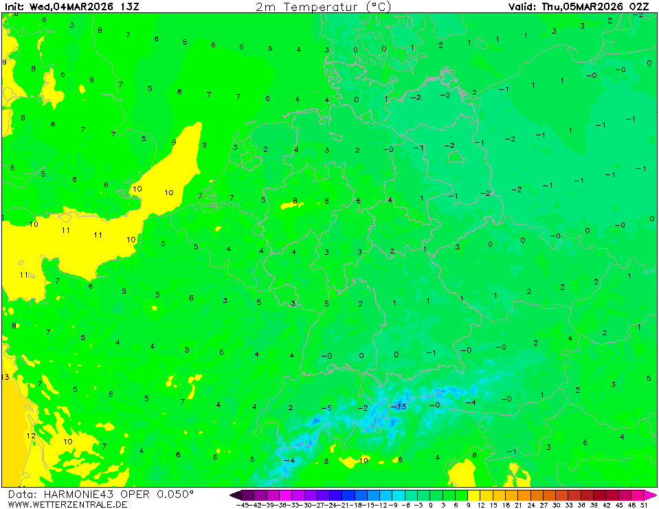 HARMONIE (KNMI-EU)Currently selected. HARMONIE is developed in a european consortium and this is the output provided by the KNMI at the supercomputing facilities in Iceland. The output from Cy43 is available at a rotated lat-lon grid and regridded at our server to a grid spacing of 0.05 degree. These data are the raw data provided by the KNMI. The model is reinitialized every hour and run up to 60 hrs ahead.