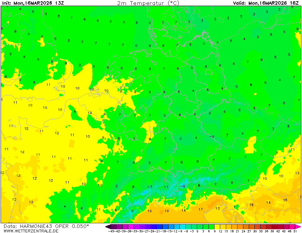 ARPEGEThe selected variable and region is available, but not for 2025-12-12, 16:00. You will switch back to the first available time step. ARPEGE is the global forecast model of the French weather service (Meteo France). It is runs with a maximum resolution of approx. 7 km in Europe and mean global grid spacing of 15 km. WZ offers forecasts up to 102 hours.