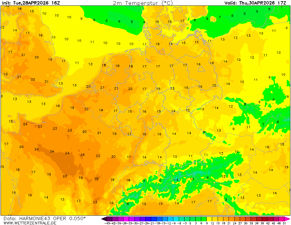 ARPEGEThe selected variable and region is available, but not for 2026-04-20, 17:00. You will switch back to the first available time step. ARPEGE is the global forecast model of the French weather service (Meteo France). It is runs with a maximum resolution of approx. 7 km in Europe and mean global grid spacing of 15 km. WZ offers forecasts up to 102 hours.