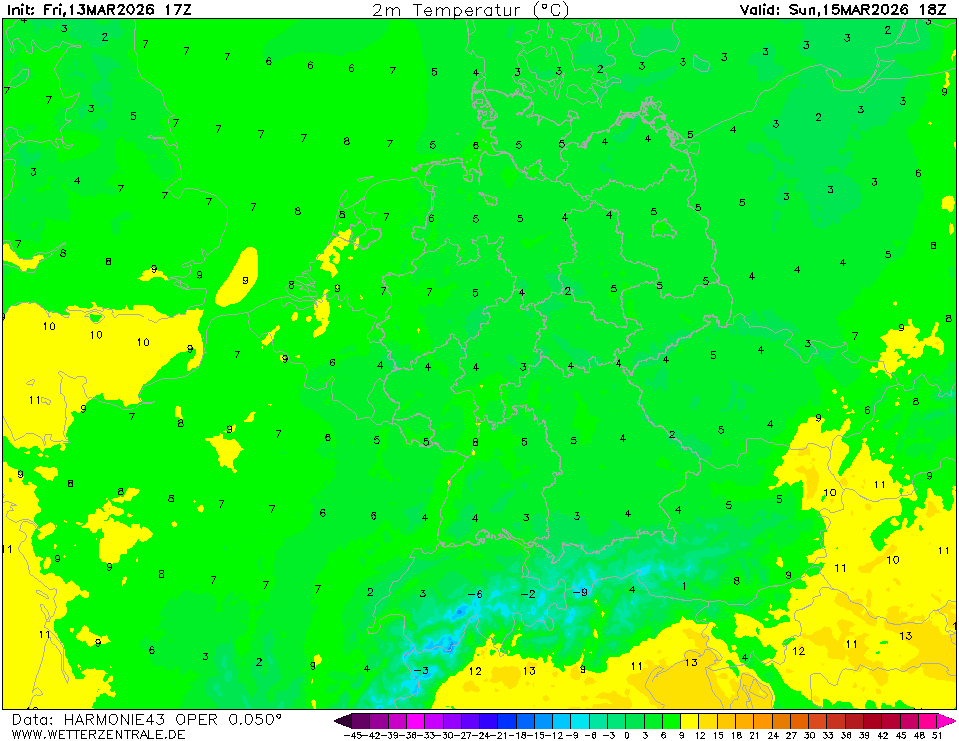 ICONThe selected time, variable and region is available for this model. ICON is the global weather forecast of the German weather service (DWD) with a grid spacing of approx. 13 km globally (Europe nest: 6 km). Model output is available up to 180 hours ahead for the 0Z and 12Z runs, and up to 120 hours for the 6Z and 18Z runs.