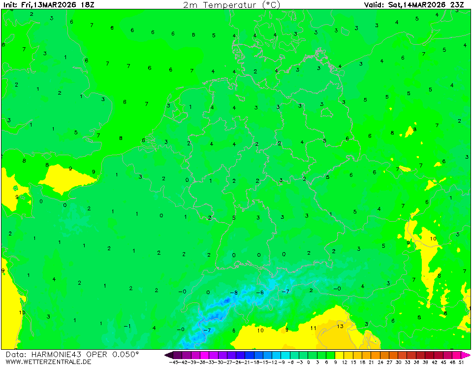 ARPEGEThe selected variable and region is available, but not for 2025-12-09, 23:00. You will switch back to the first available time step. ARPEGE is the global forecast model of the French weather service (Meteo France). It is runs with a maximum resolution of approx. 7 km in Europe and mean global grid spacing of 15 km. WZ offers forecasts up to 102 hours.