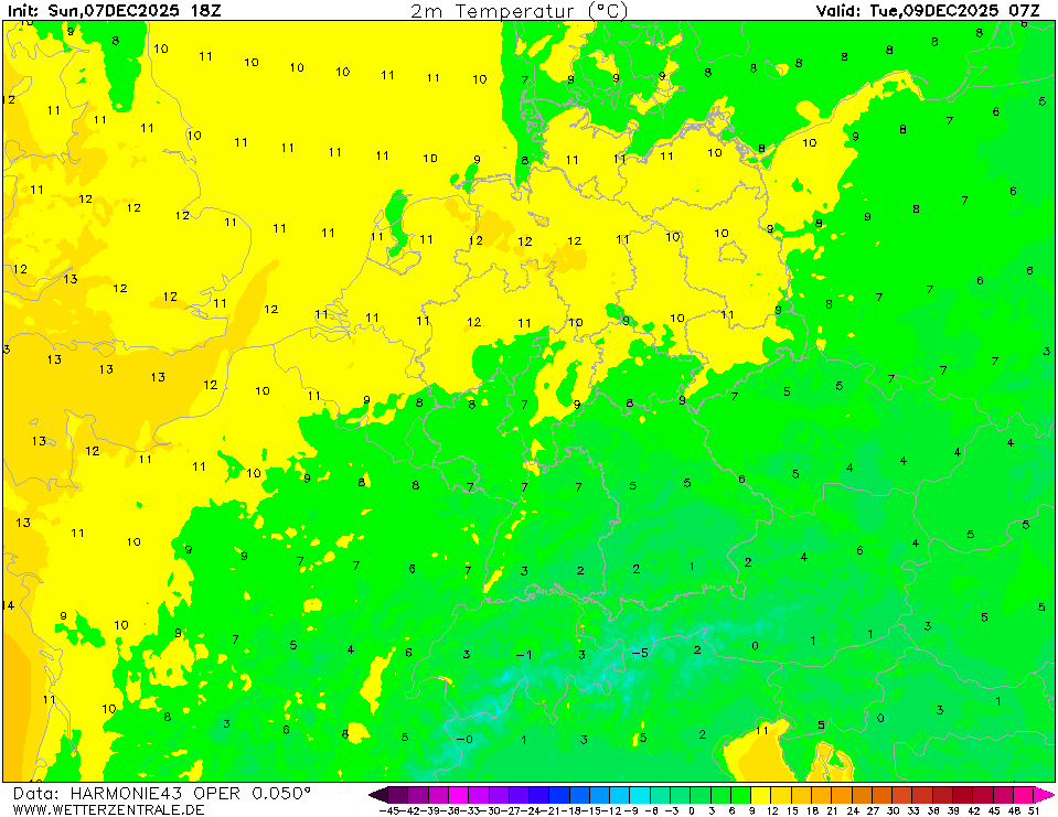 NAVGEMThe selected variable and region is available, but not for 2025-11-10, 07:00. You will switch back to the first available time step. NAVGEM is a model run by the NOAA and serves the US navy with weather forecasts. The WZ maps are based on data that is available from the NCEP server with a grid spacing of 0.5 degree and is updated twice daily (7 and 19 UTC).