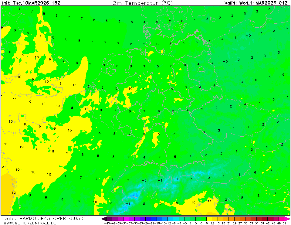 NAVGEMThe selected variable and region is available, but not for 2025-12-09, 01:00. You will switch back to the first available time step. NAVGEM is a model run by the NOAA and serves the US navy with weather forecasts. The WZ maps are based on data that is available from the NCEP server with a grid spacing of 0.5 degree and is updated twice daily (7 and 19 UTC).